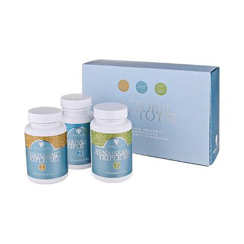 Третья формула «Renaissance Triple Set–Истоки Чистоты» – это сложный комплекс антиоксидантов различного происхождения, который обеспечивает мощную защиту клеток на всех уровнях. Внешнюю защиту клеток обеспечивают такие антиоксиданты, как витамин С, растительные биофлавоноиды (рутин, дигидрокверцитин), а также экстракт косточек винограда, черники, клюквы, чабреца и зеленого чая. Они создают надежный барьер вокруг каждой клетки, связывая и нейтрализуя свободные радикалы.